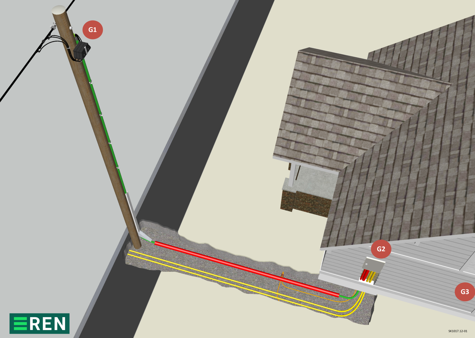 Denne løsningen benyttes vanligvis ikke i tettbygde strøk eller boligfelt, men kan være aktuell i områder hvor det er lite sannsynlig at flere kunder vil kobles til samme stolpe i nær fremtid. Dette gjelder særlig der det: